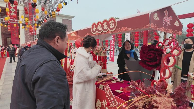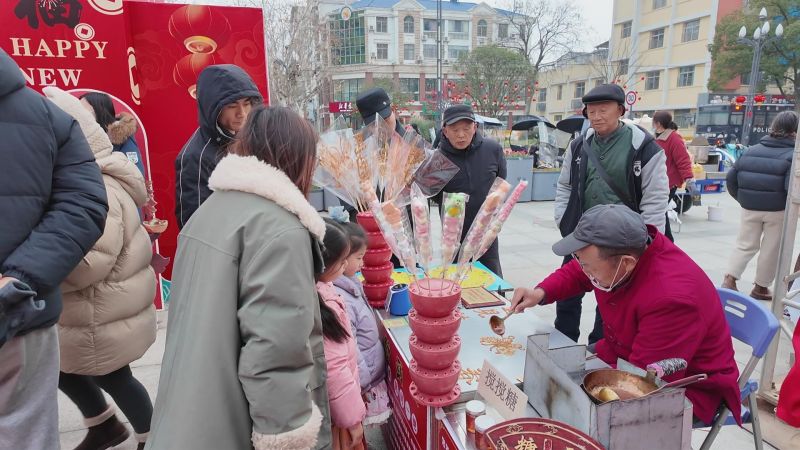 “路过这儿就看到不少搭好的棚子,特意过来逛逛,还买了非遗糖画。听说一会儿还有表演,快过年了,这里真是热闹,年味太足了!” 市民聂莉笑着说。