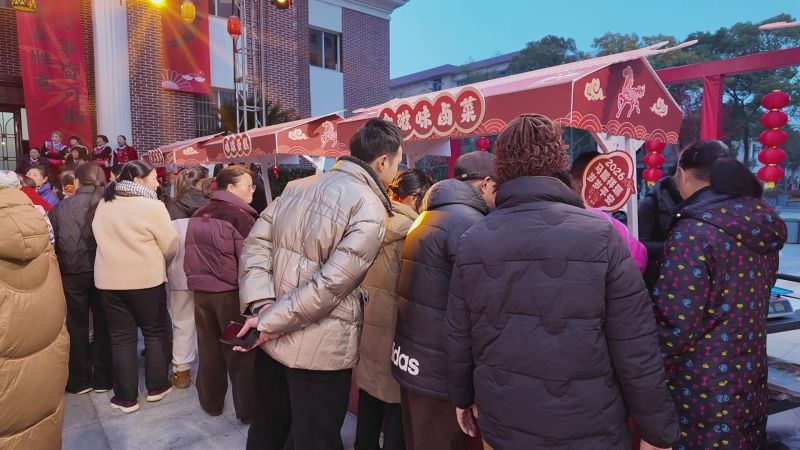 活动现场人头攒动,各类商品琳琅满目、品类丰富,往来群众络绎不绝,处处洋溢着热闹的氛围。活动首日,“文明市集”率先拉开帷幕,市集设有非遗美食区、产品展销区、文明市集区、亲子市集区和马年送福区五大特色区域。非遗美食区里,覃姐鱼糕、屈店麻花等本土非遗美食齐聚,念滋味卤菜、慢娃儿包子等特色小吃香气四溢;手工花灯、花艺等文创手作精致吸睛,市民穿梭其间,品尝美味、挑选好物,沉浸式体验非遗文化魅力。产品展销区重点推出“枝滋有味”等枝江特色产品,各类本土优质好物集中亮相,既为市民选购新春年货提供便利,也助力本土特色产品走出枝江,实现文旅融合与助农惠民双向赋能。